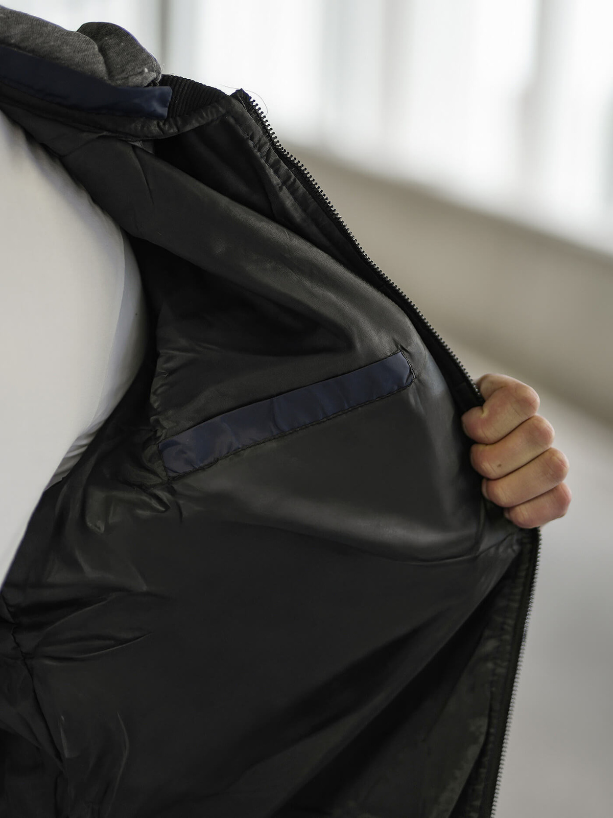 Beschreibung: Diese gesteppte Übergangsjacke von OZONEE verbindet sportliche Eleganz mit funktionalem Komfort. Der abnehmbare Kapuzeneinsatz verleiht der Jacke einen angesagten Hoodie-Look, während die Rippbündchen für einen angenehmen Sitz sorgen. Die praktischen Taschen – darunter eine am Ärmel mit Reißverschluss – bieten ausreichend Platz für Ihre Essentials. Ob beim Spaziergang, auf dem Weg zur Arbeit oder in der Freizeit – mit dieser Jacke sind Sie stilvoll und bequem unterwegs.