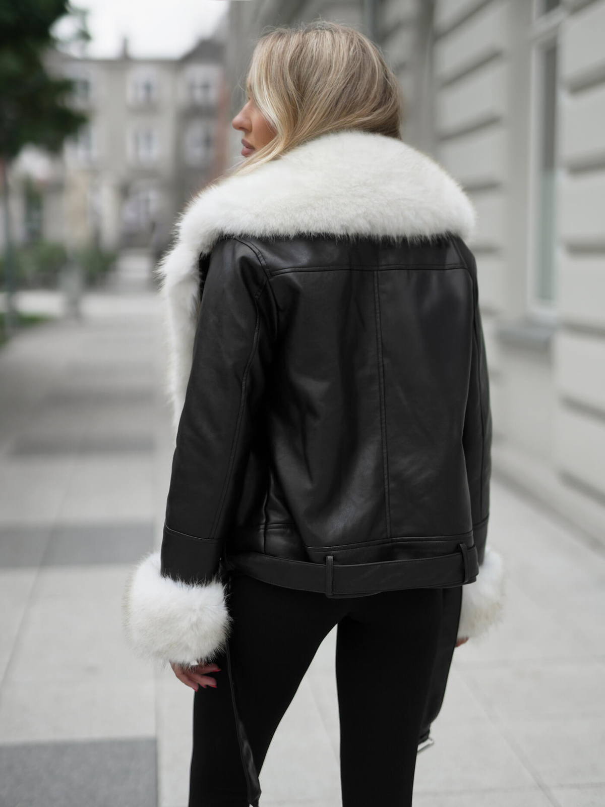 - Diese klassische Bikerjacke aus Lederimitat hat einen abnehmbaren Kunstfellkragen und seitliche Reißverschlusstaschen für einen perfekten Look