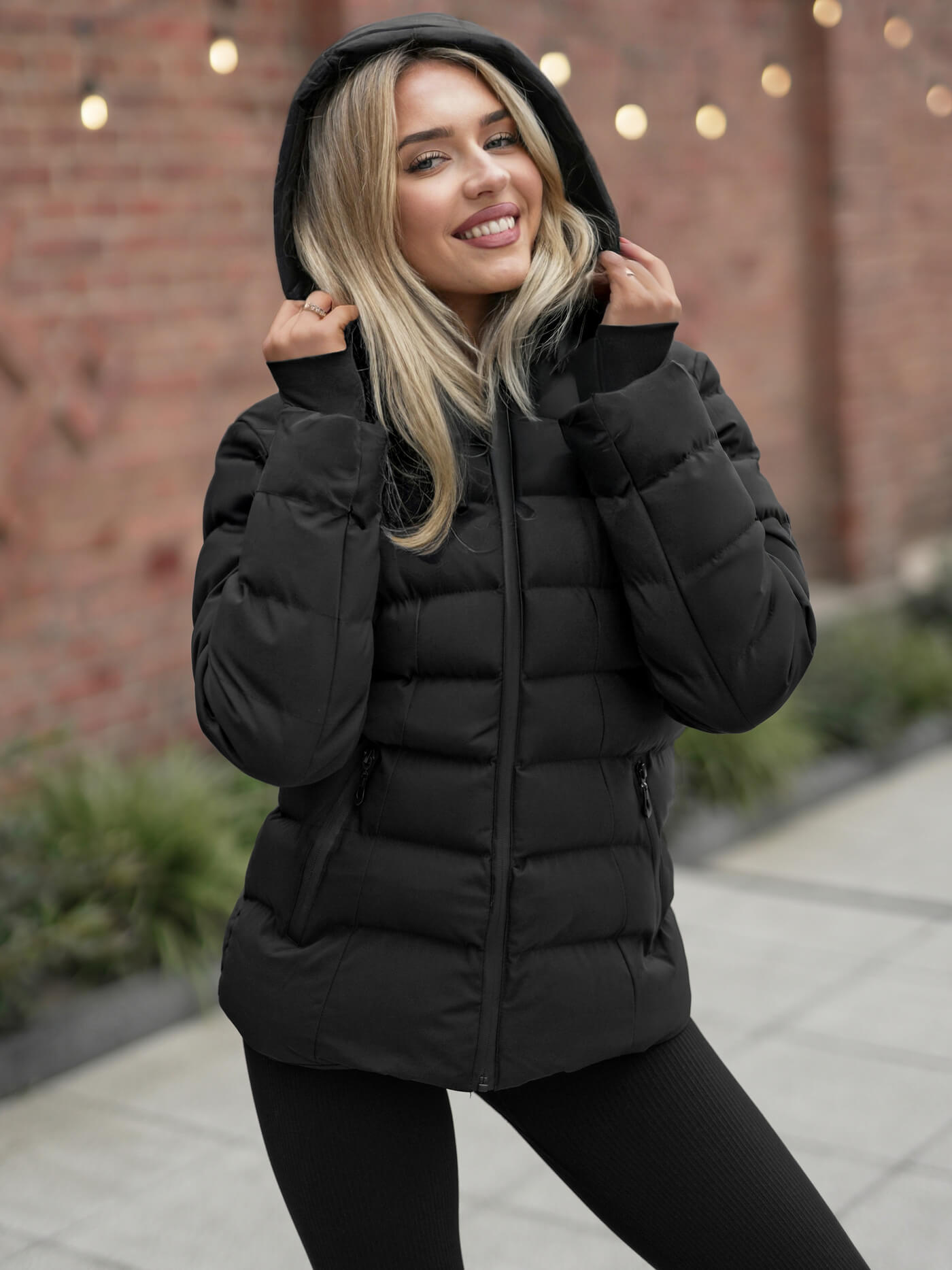 Stilvolle und praktische Damen Steppwinterjacke schwarz OZONEE JS/M769/392Z