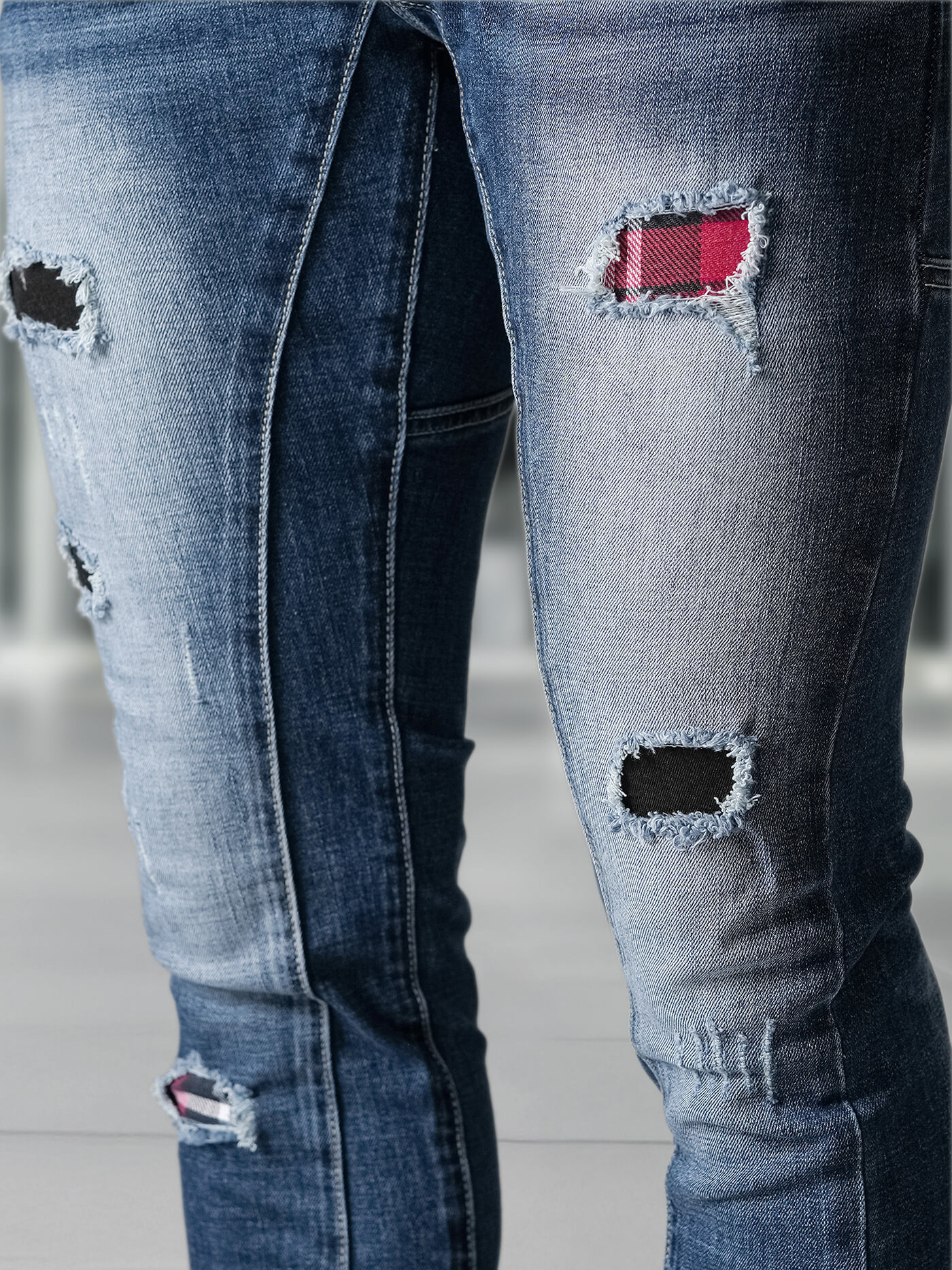 - Diese Jeans im Slim Fit Stil verfügen über modische Abnutzungen an den Hosenbeinen und stilvolle Materialverbindungen