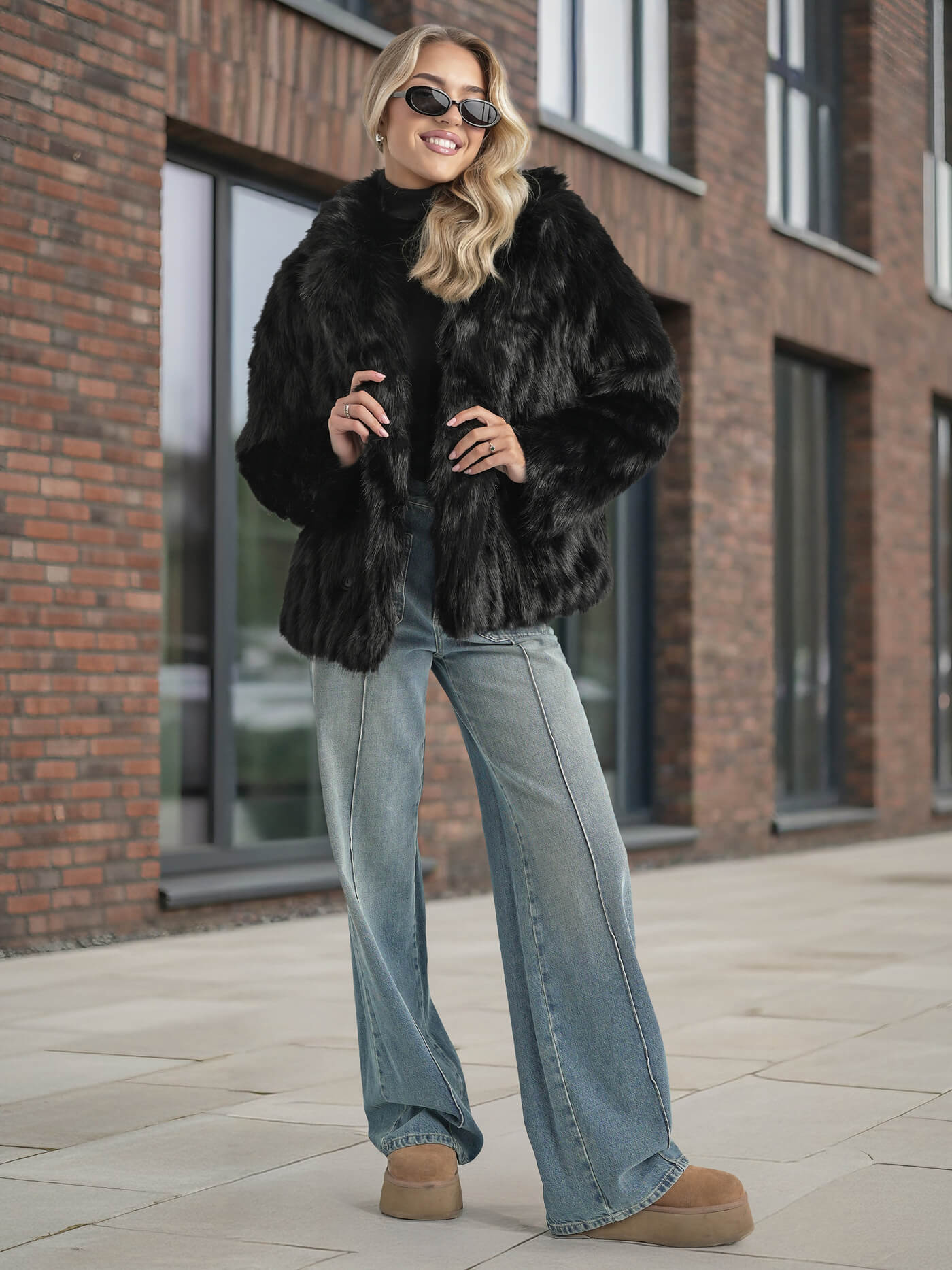 - Elegante Damen-Winterjacke aus weichem Material in Felloptik