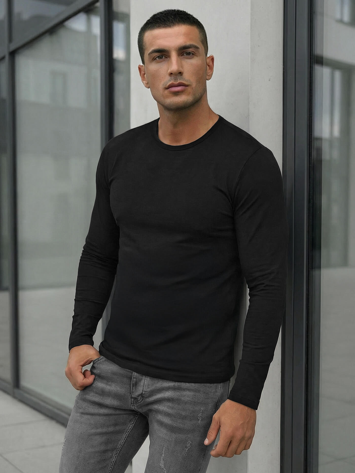 - Klassisches Design mit Rundhalsausschnitt und langen Ärmeln – ideal für Alltag, Freizeit oder Sport