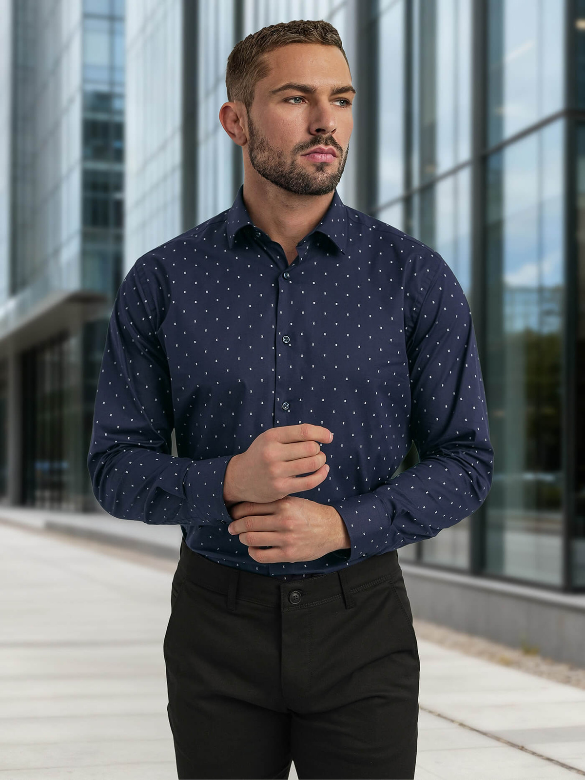 - Moderner Slim-Fit-Schnitt – betont die männliche Silhouette, ohne einzuengen