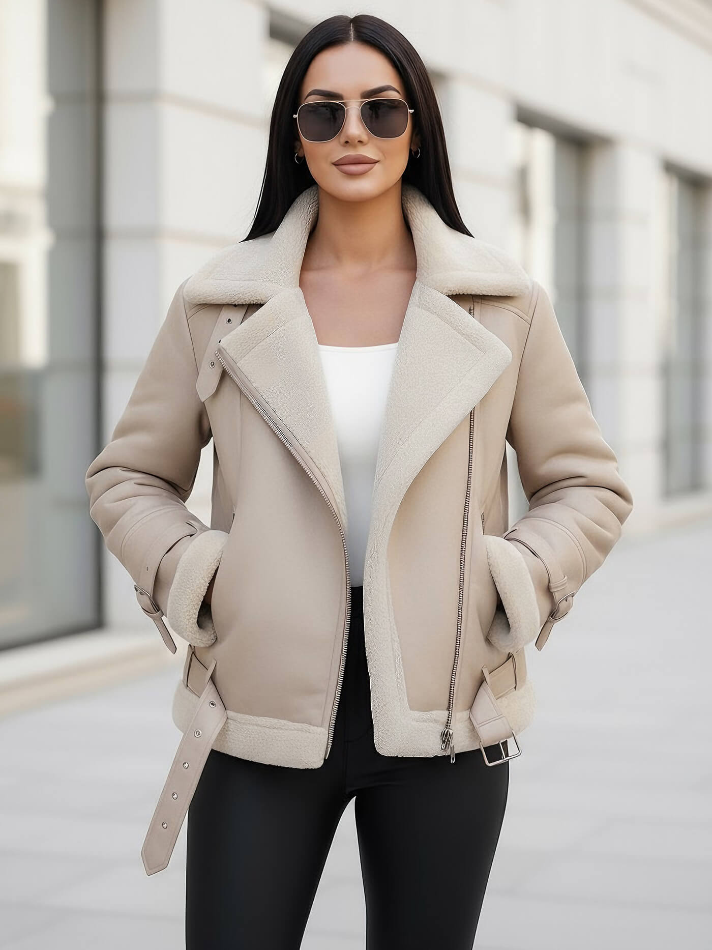- Diese stilvolle Jacke im Biker-Stil ist mit weichem Kunstfell gefüttert, das für ein angenehmes Tragegefühl sorgt
