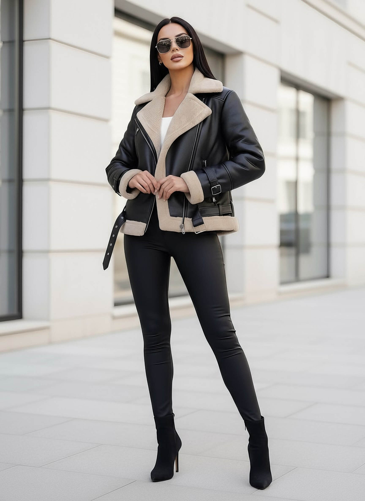 OZONEE Damen Lederjacke JS/11Z8177 mit Kunstpelzfutter