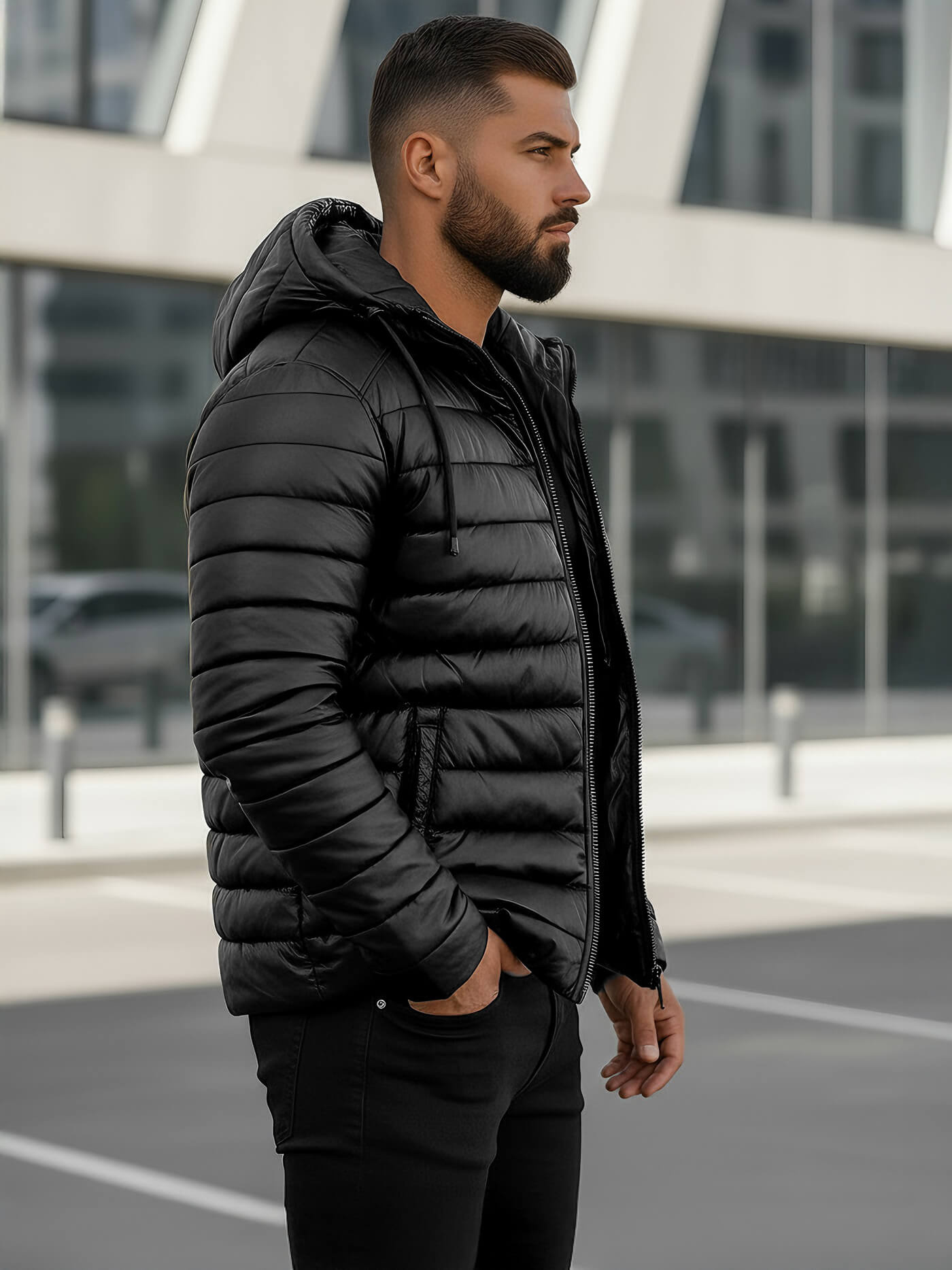 - Diese modische Jacke hat eine verstellbare Kapuze mit Kordelzug und stilvolle Steppungen