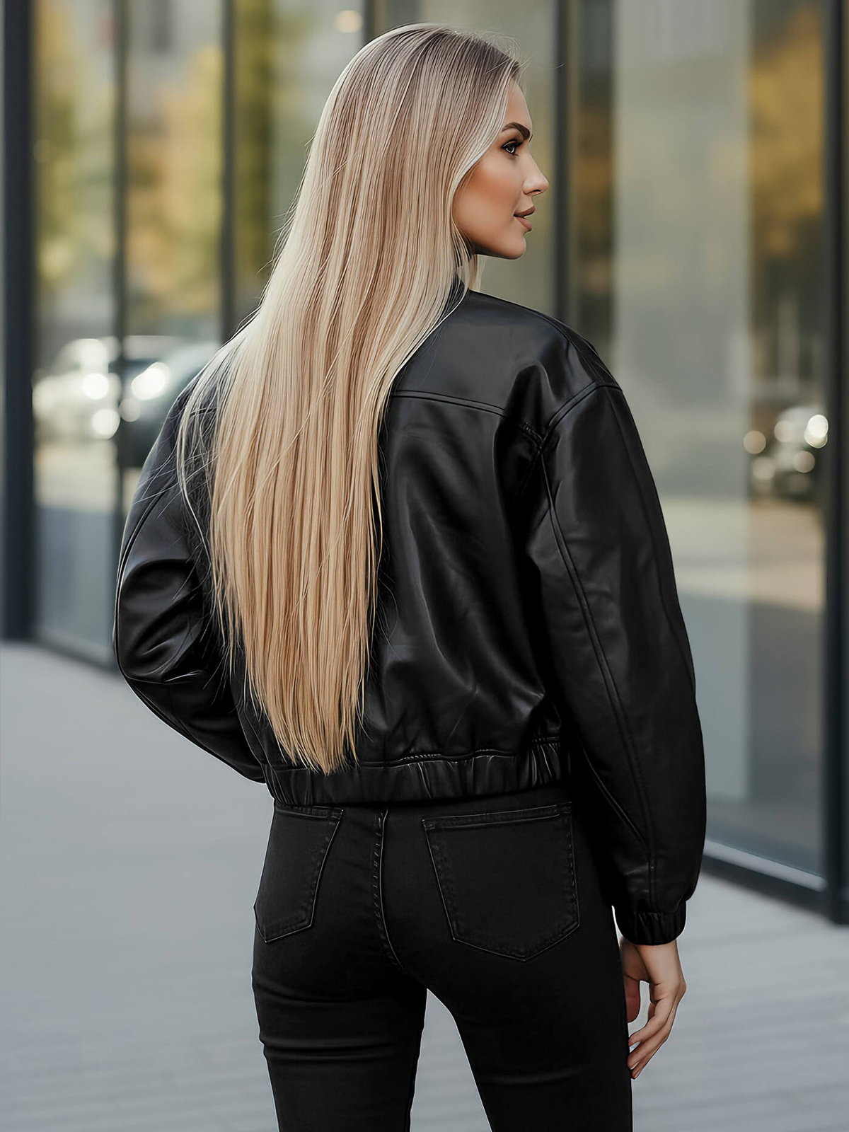 - Stylische Damenjacke aus hochwertigem Material mit Lederoptik für einen modernen, urbanen Look