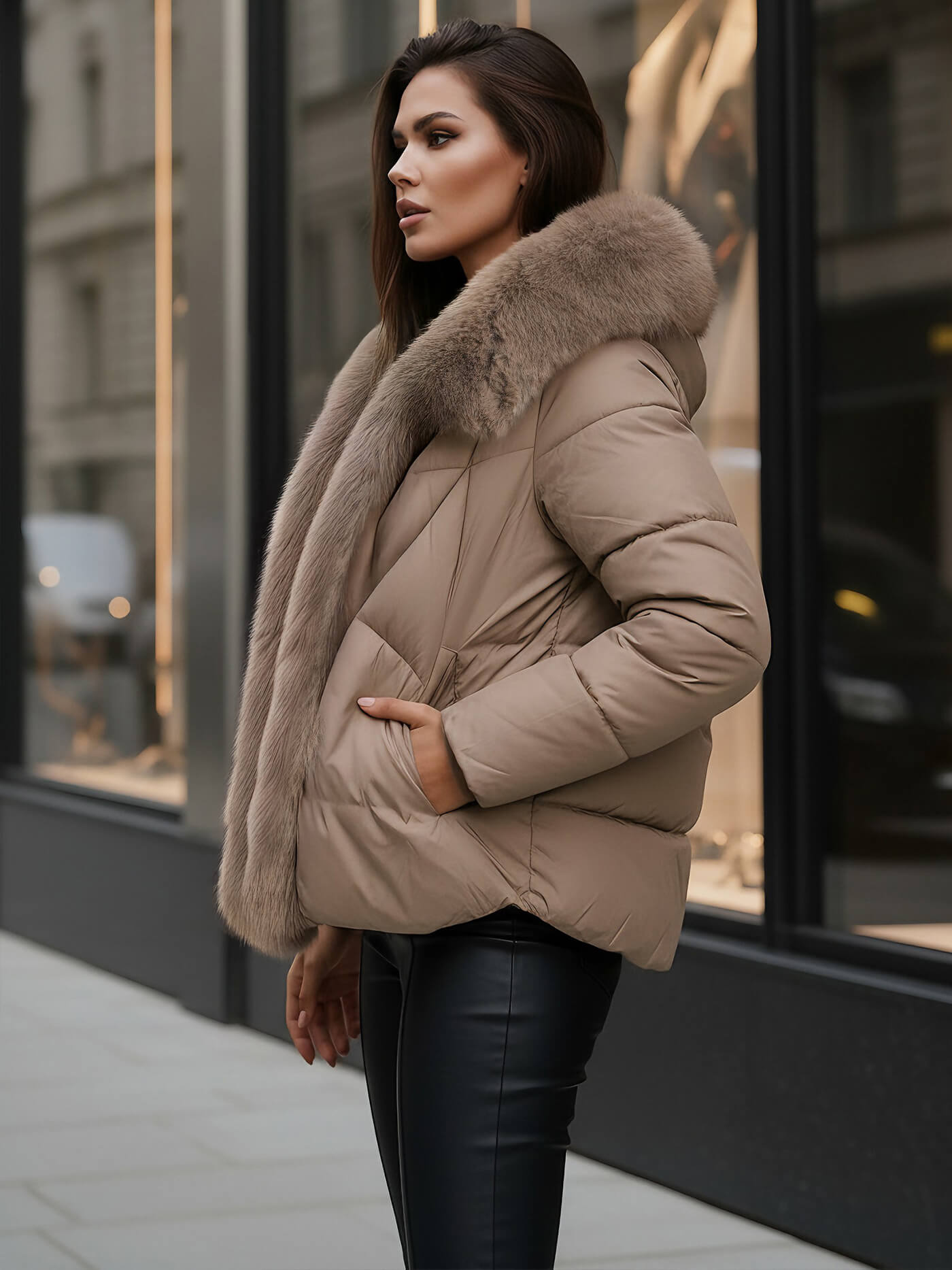 - Gefütterter Rumpf und Kapuze mit abnehmbarem Fell