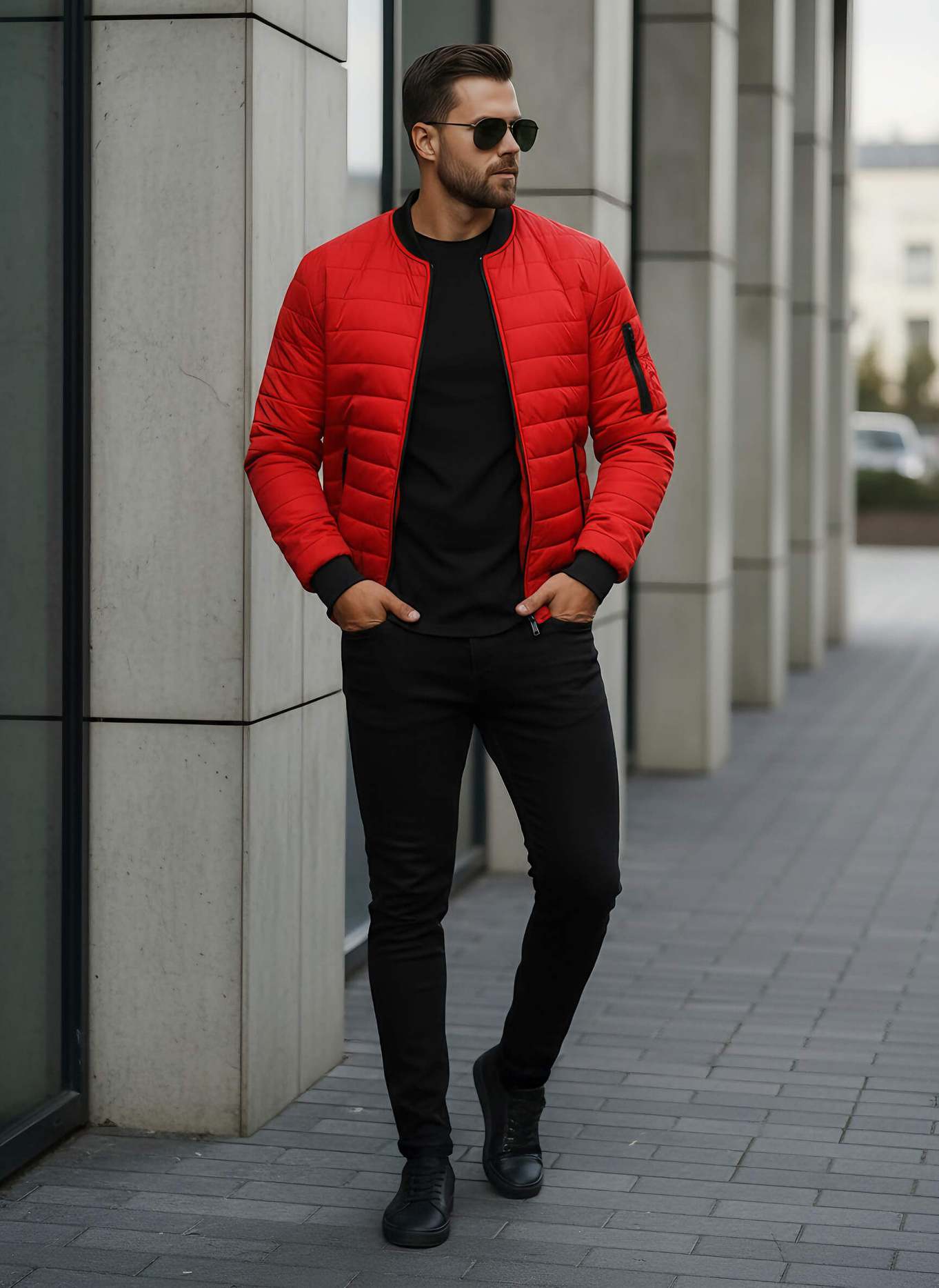 - Diese klassische Bomberjacke ist mit einem Reißverschluss ausgestattet und hat seitliche Taschen sowie eine Ärmeltasche mit Reißverschluss für zusätzlichen Komfort