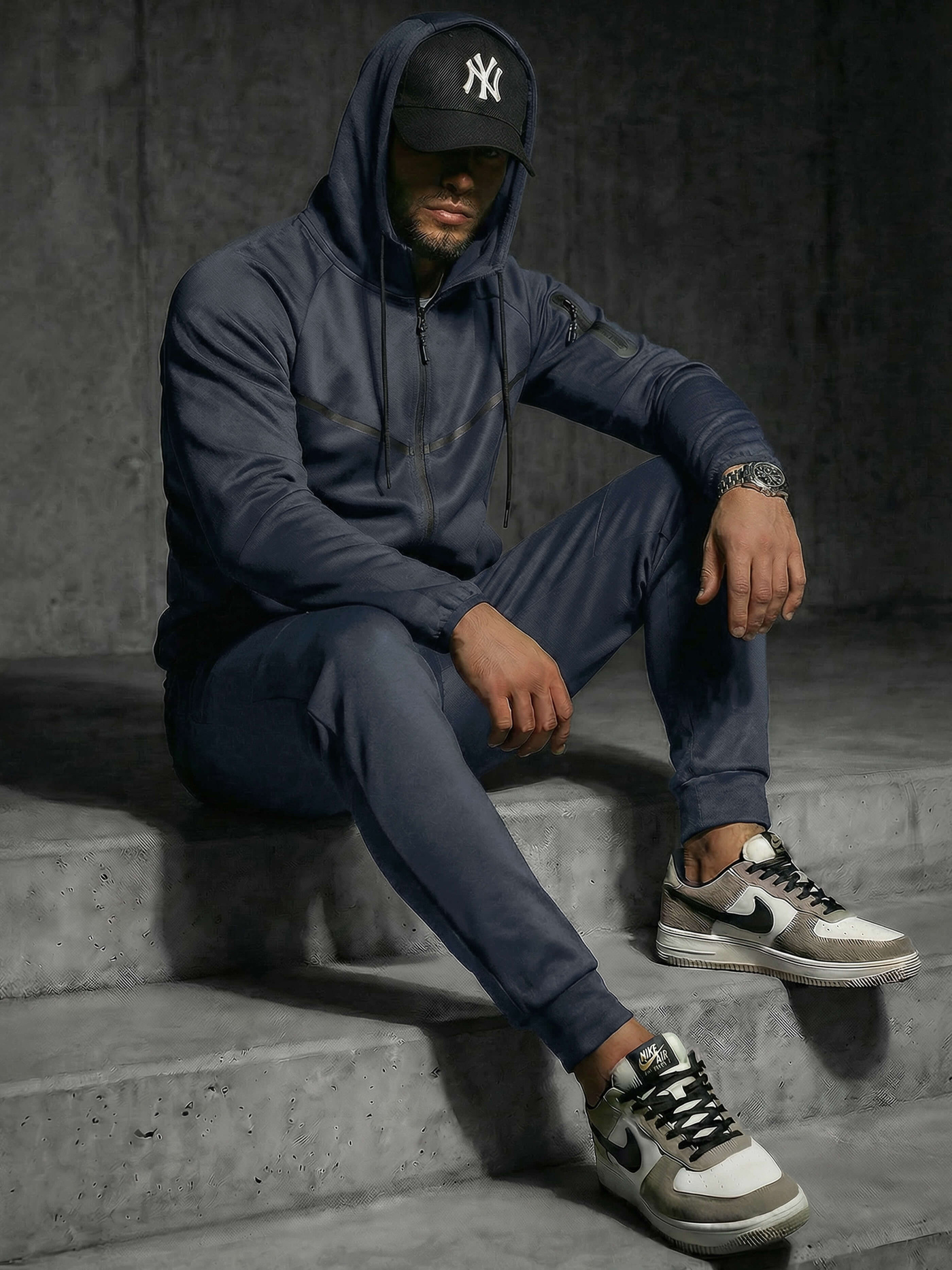 - Zweiteiliger Herren Trainingsanzug aus leichtem, pflegeleichtem Material – ideal für Freizeitmode und ein bequemes Tragegefühl