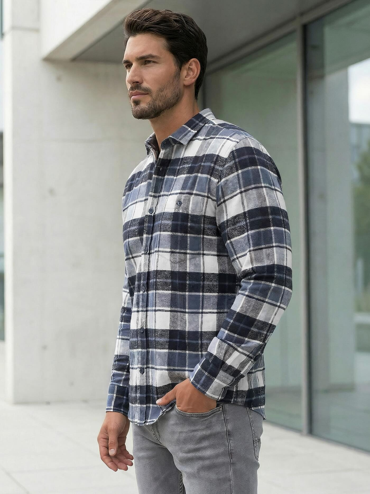 - Modisches Herrenhemd mit Karomuster in Dunkelblau