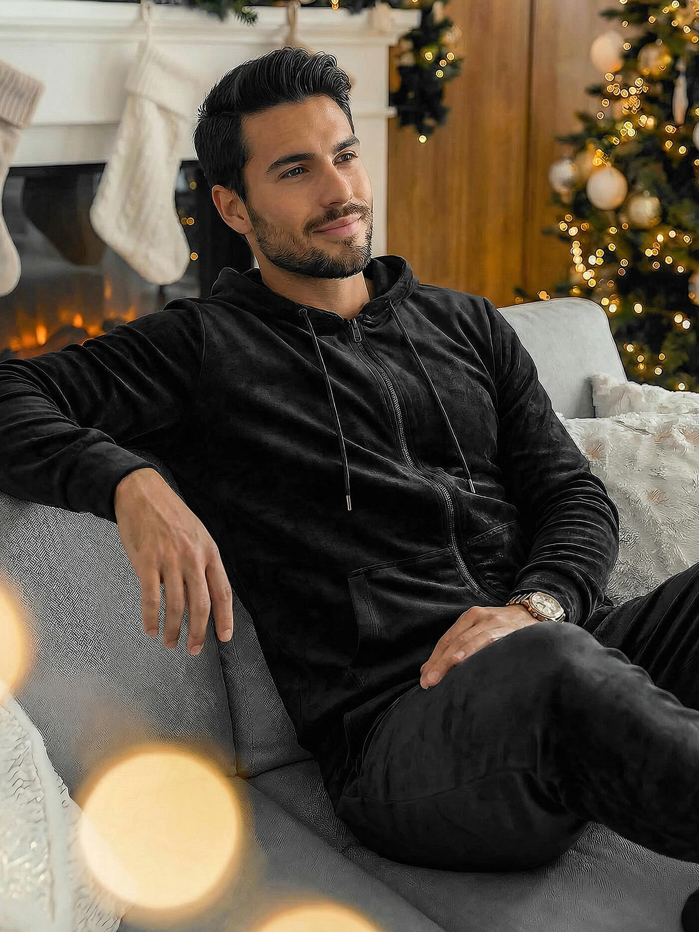 Das Velours-Trainingsanzug-Set für Herren ist eine ideale Wahl für Männer, die Wert auf Komfort und Bewegungsfreiheit legen.