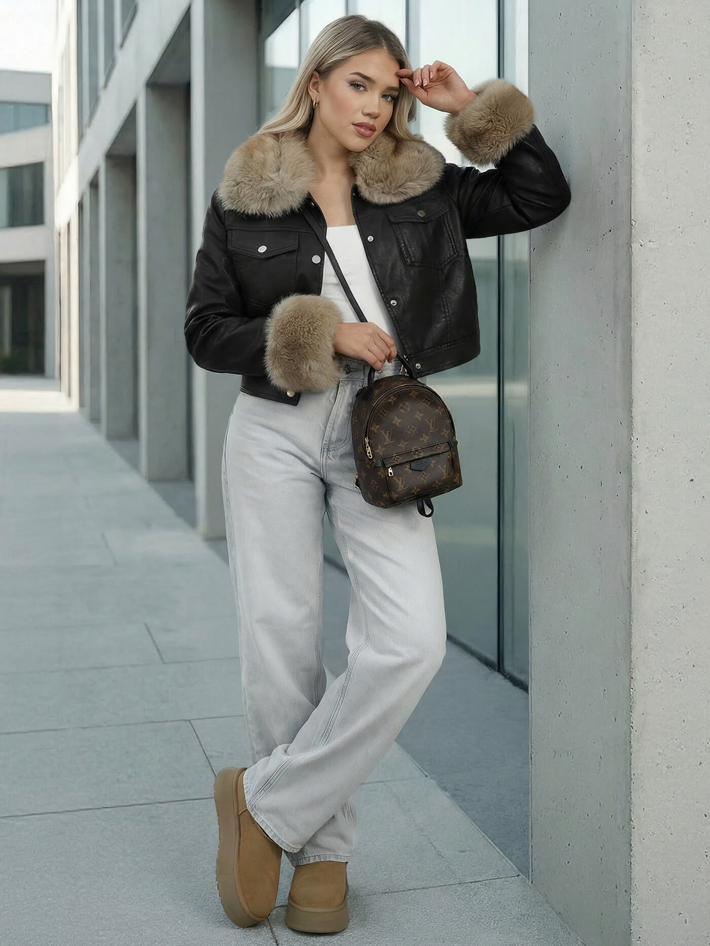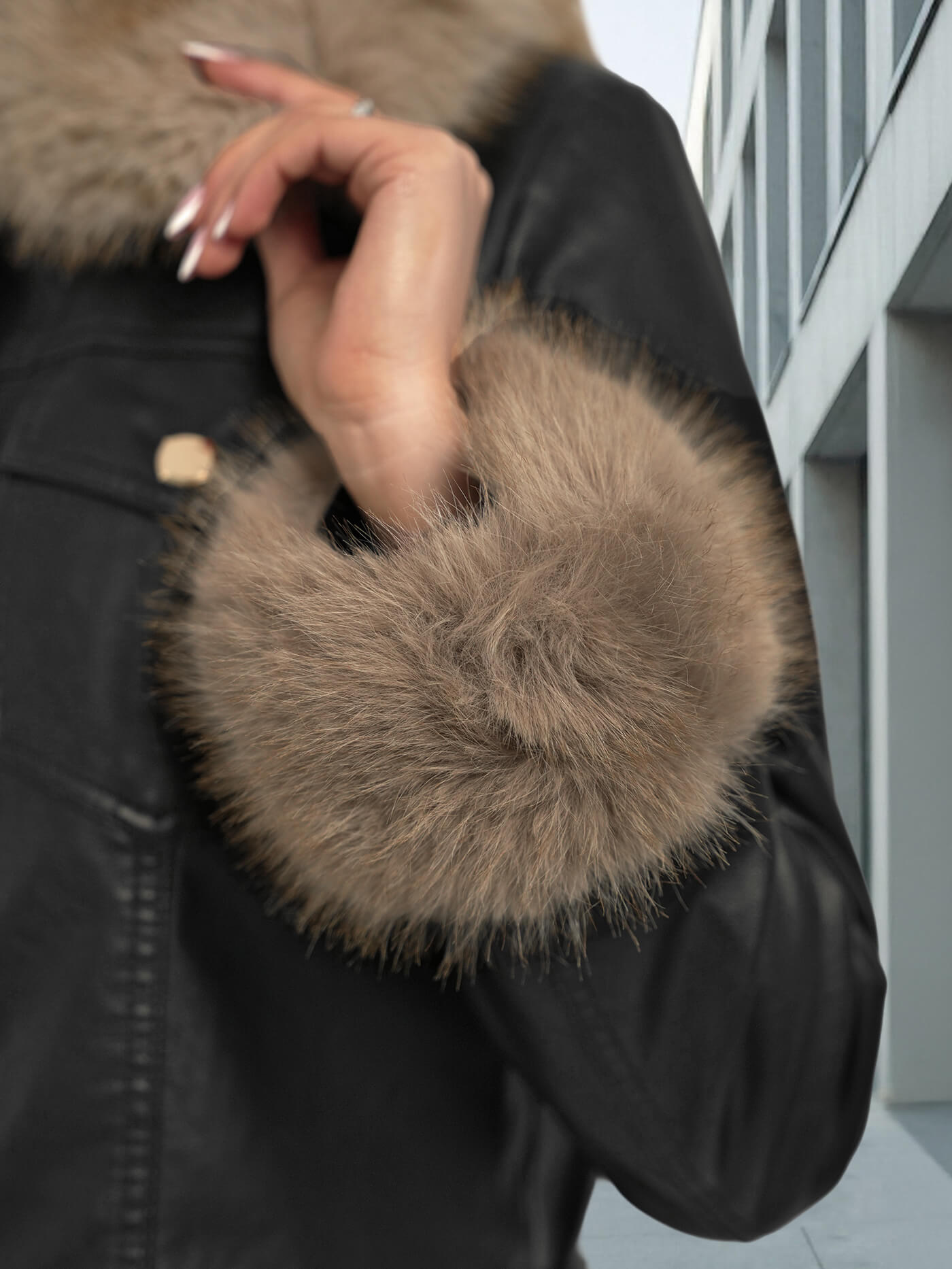 - Diese stilvolle Jacke aus Kunstleder hat einen abnehmbaren Kunstfellkragen und abnehmbares Kunstfell an den Ärmeln für vielseitige Looks