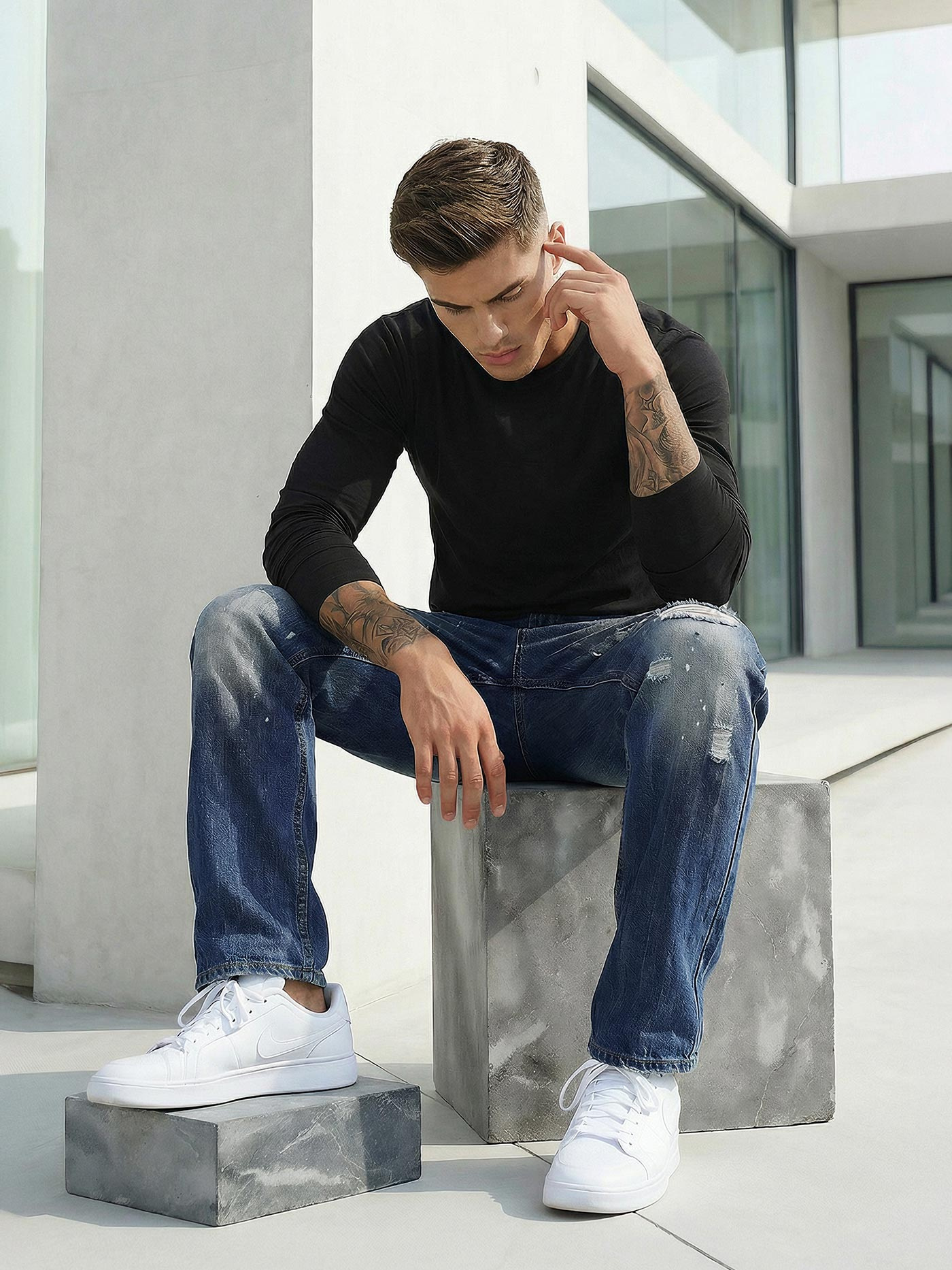 - Herren Jeans mit weitem Bein