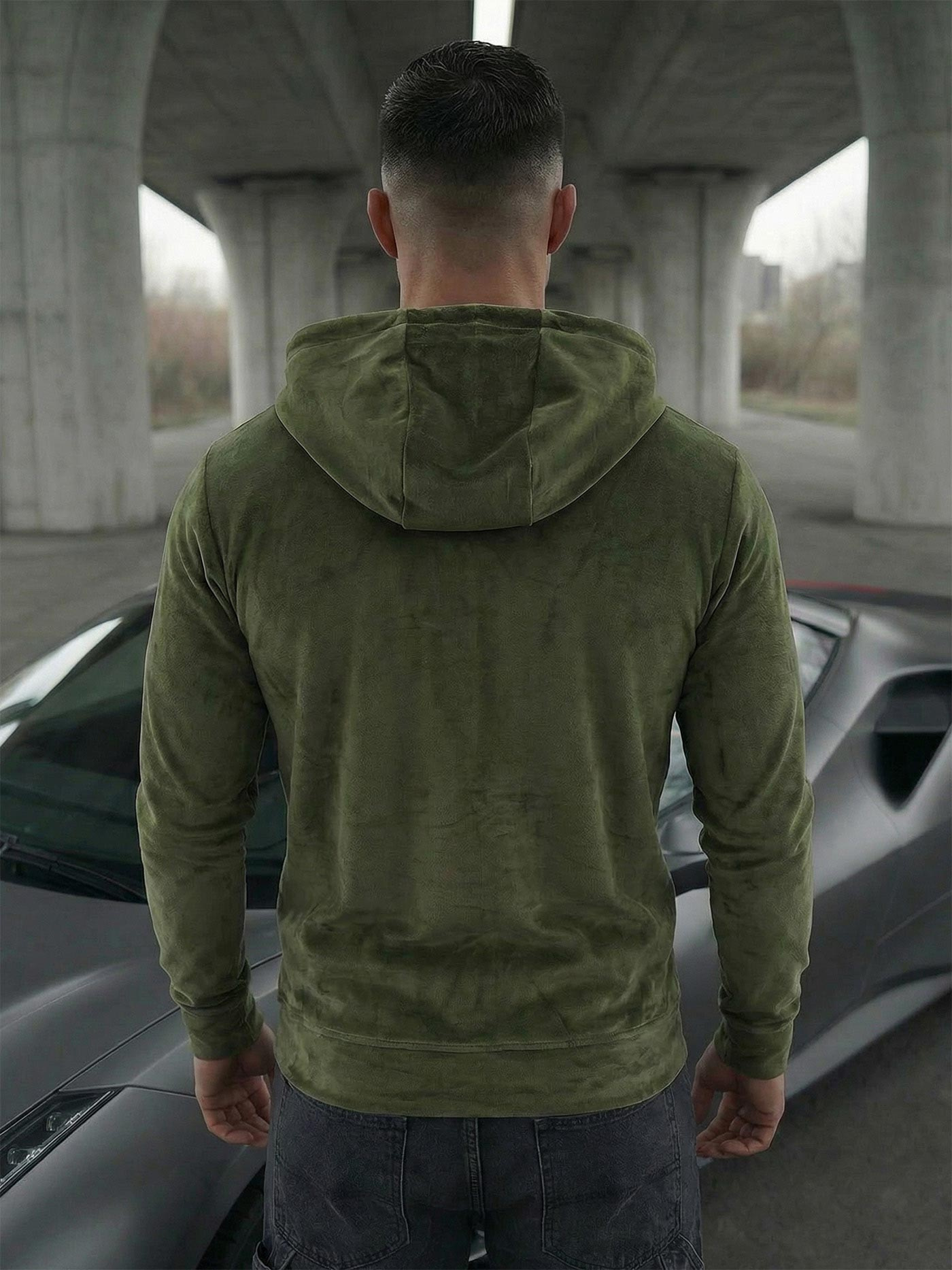 Der khakifarbene Velours-Kapuzenpullover OZONEE JS/8B1168/29Z für Herren - Stil und Komfort in einem
