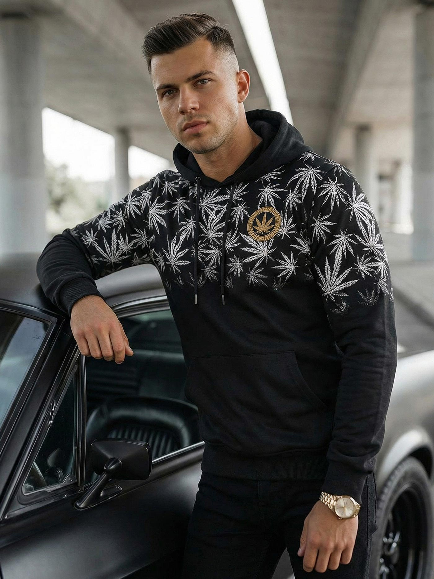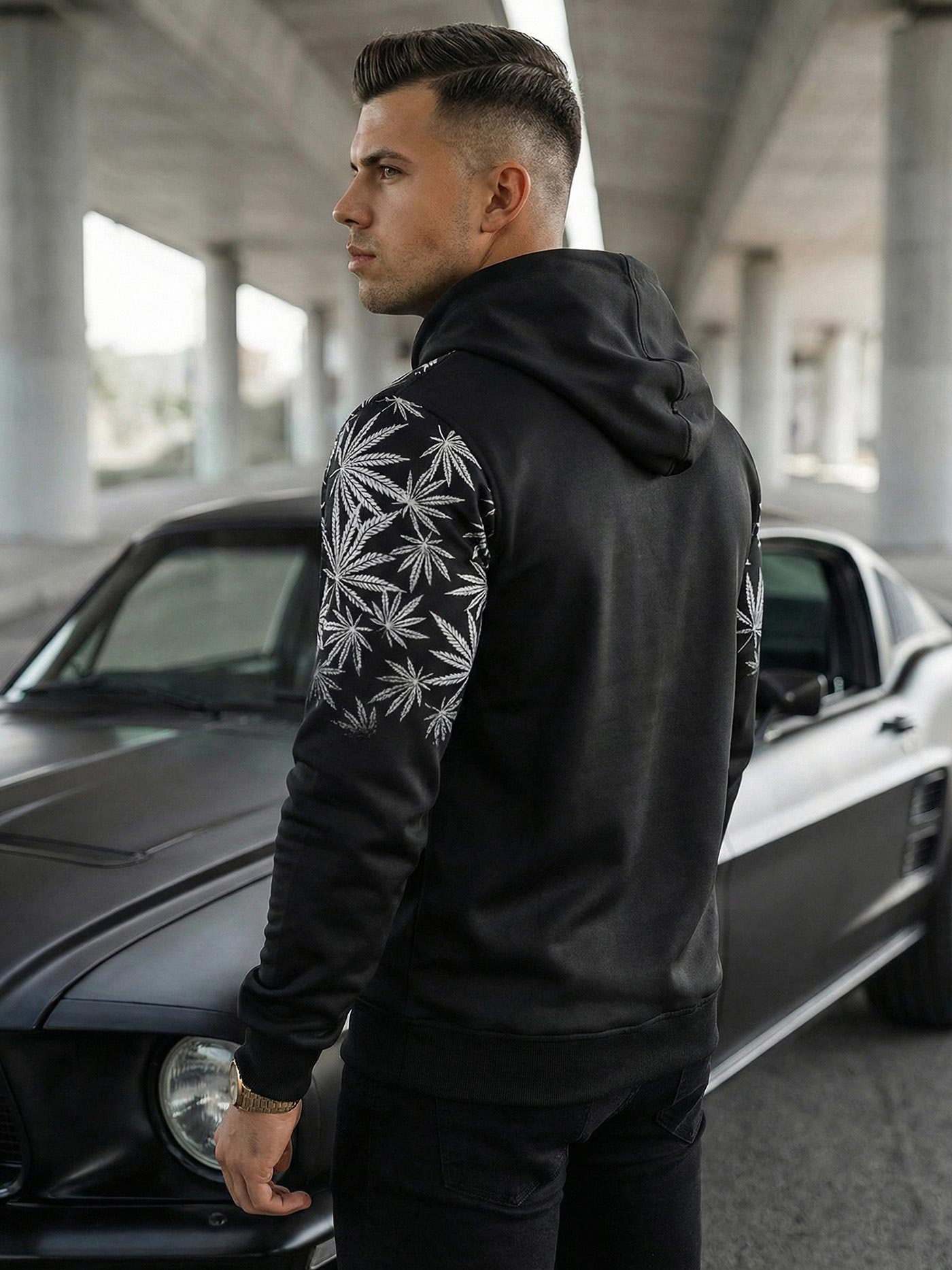 Herren Kapuzenpullover Schwarz OZONEE O/B272Z